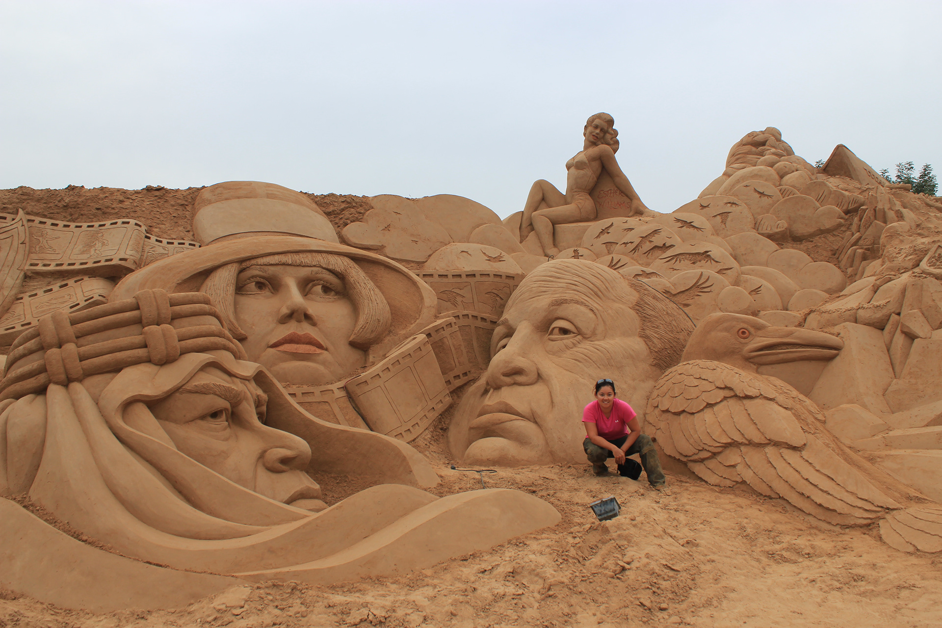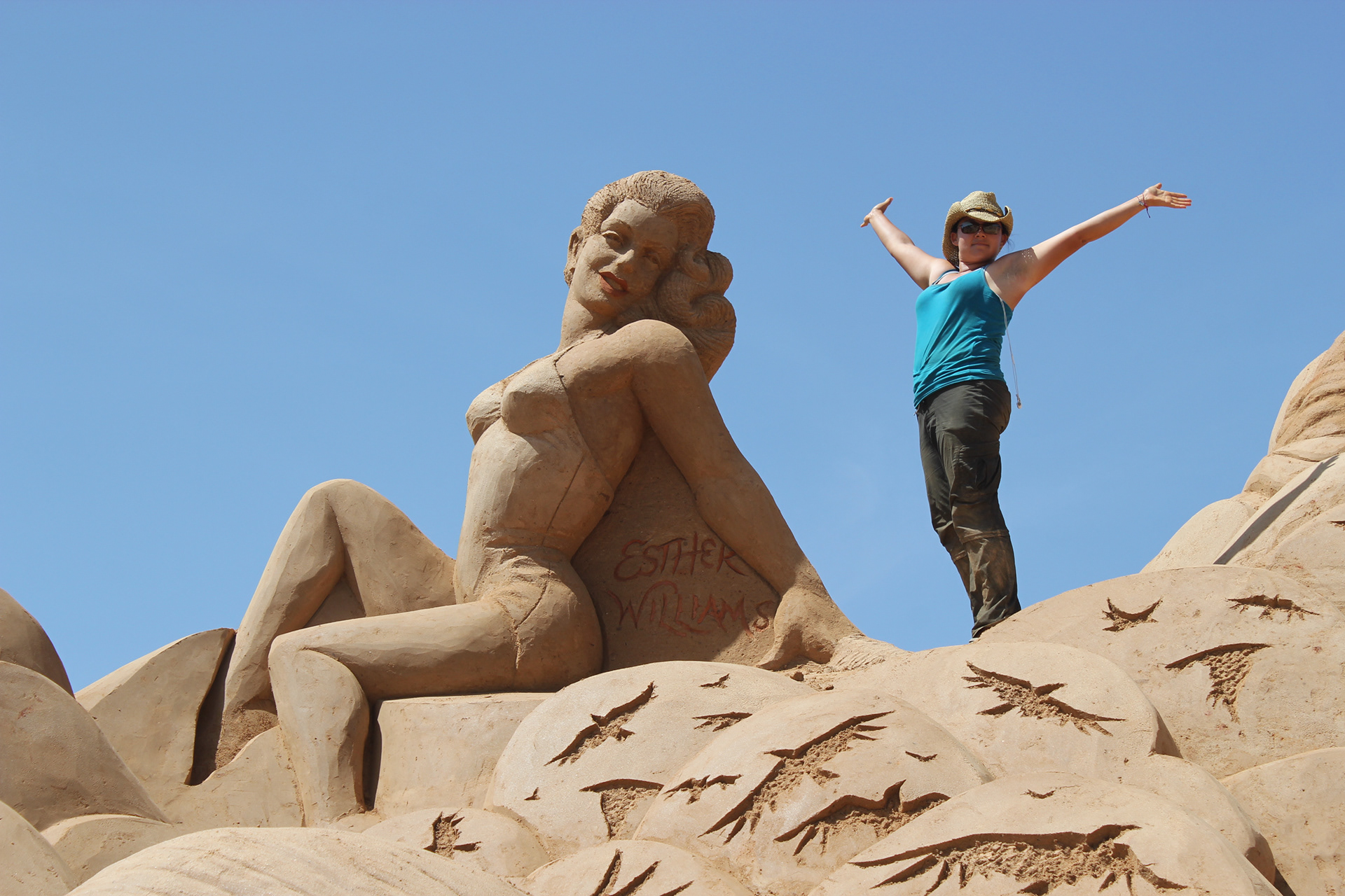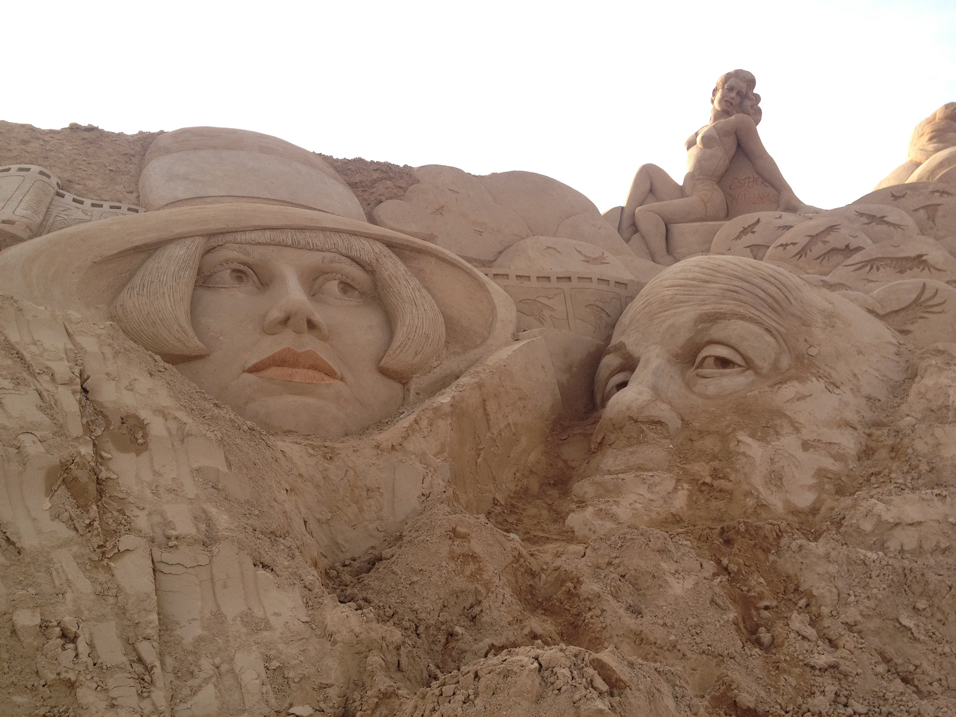 Sand Sculpture wall for "Fiesa 2012" Sculpture park in Pera Algarve, Portugal. Iconic Figures from Old Hollywood Classics. Esther Williams, Louise Brooks, Alfred Hitchcock, and Lawrence of Arabia