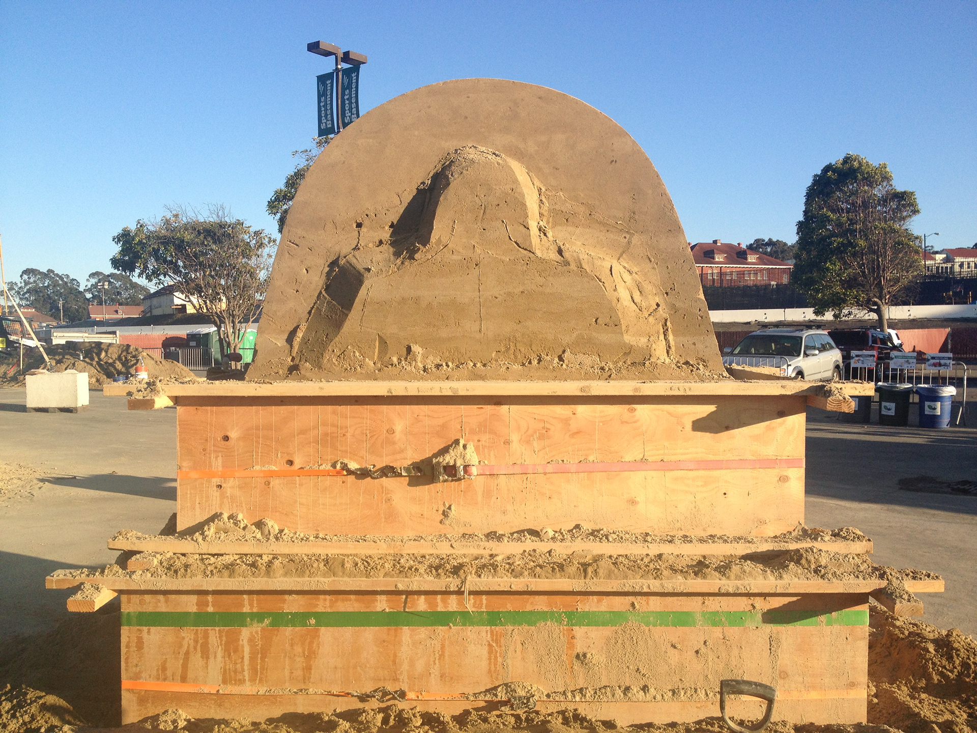 Side View of the Pound Up (Wooden boxes filed with sand and compacted with water)